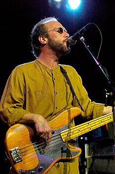 03/21/08: Still going strong and sounding great, Rock Icon Leon Russell* and his band played to a SRO crowd at the State Theater* in Falls Church, Virginia. Band members pictured above are (L-R)....Jackie Wessel* (Bass), Chris Simmons* (Lead Guitar), Brian Lee* (Keyboards) and Grant Whitman* (drums).